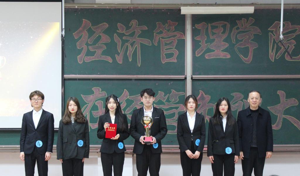 经过初赛、复赛的层层选拔,最终有四支队伍进入决赛。决赛共分为“限时答题”、“ 唇枪舌战”、“ 才艺展示”、“ 一站到底”四个环节。“限时答题”环节参考时下最热门的时事政治以及党史知识,辅以经济管理类专业知识,三分钟内答题正确数量多者获胜;“唇枪舌战”环节将四支队伍分成两组进行辩论,每队选手据理力争,引经据典,将现场氛围推向高潮;“才艺展示”环节各队伍自信大方,在台上将各自风采逐一展现;“一站到底”环节每队选手对答如流,展现了丰厚的知识储备和综合能力。最终,“秘制汉堡队”获得一等奖,“锦鲤蒙啥都对”获得二等奖,“第二队”、“ 快乐星球”获得三等奖,“第二队”获得最佳人气奖。比赛最后在学生会学习部全体成员的合唱《星辰大海》中落下帷幕。