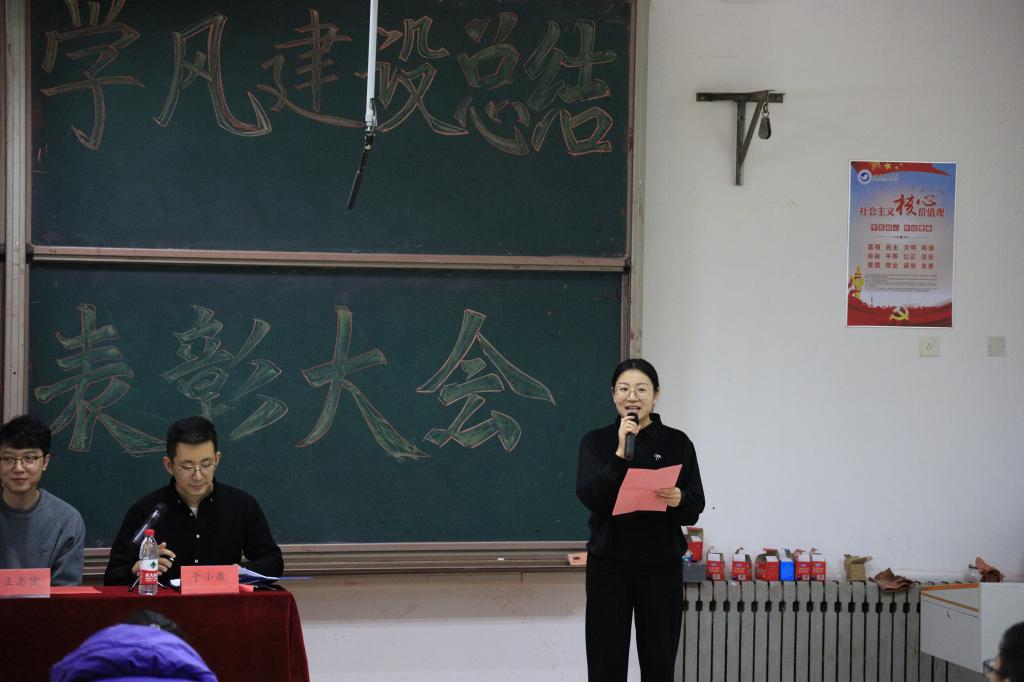 院长、党总支书记金海珠总结发言,他对获得表彰的师生表示祝贺,对一年来为学院发展作出贡献的全体师生表示感谢。希望大家都能向今天获表彰的师生学习,以他们为榜样。师德师风和学风建设始终是学院的重要工作,要常抓不懈。最后,学习部部长陆莹莹带领全体学生作诚信考试宣誓。